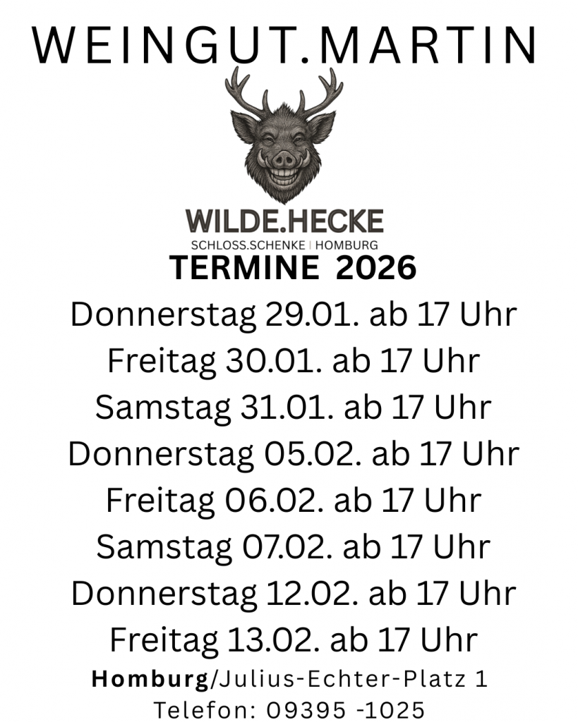 Direkt vor dem Homburger Schloss befindet sich unsere SCHLOSS.SCHENKE die wir zu einer modernen „WEINSTUBE 4.0“ umgestaltet haben. Nicht nur hier sind unsere Gutsweine die idealen Tischbegleiter, auch für sie zu Hause oder auch gerne auf der Terrasse mit Freunden in geselliger Runde. Die Schloss.Schenke gibt den Weinen dieser Linie ihren Namen. Ein Saftiger SILVANER, „vom Muschelkalk“, der fruchtige frische ROSÈ und die kräftige DOMINA SO schmeckt FRANKEN!
