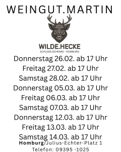 Während unseren Geschäftszeiten, kann die schöne Aussicht auf den Main mit einem Glas Schoppen genossen werden. Wir haben am Julius-Echter-Platz...